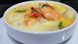 شوربة السي فود المخلية، حيث تتناغم قطع البحر الطازجة في مرق غني ومركز النكهة.